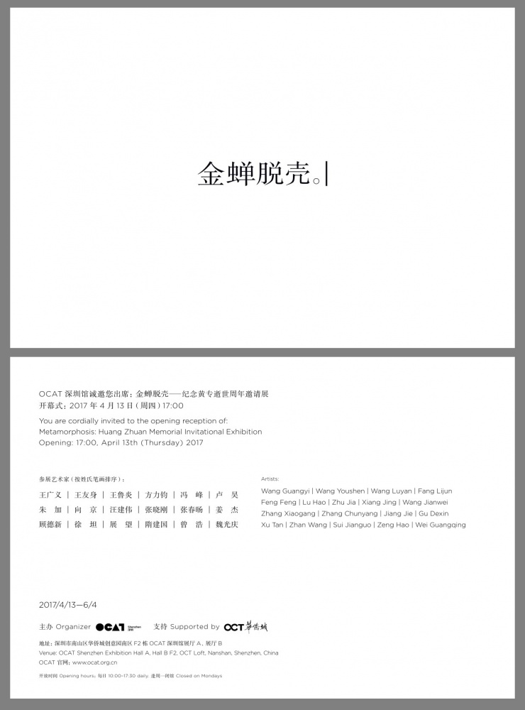 “金蝉脱壳——纪念黄专逝世周年邀请展”将于4月13日17:00在OCAT深圳馆开幕。展览由艺术家王广义、张晓刚、隋建国、王友身发起,共18位艺术家的作品将集中呈现黄专先生自1980年代中期以来具代表性的学术研究以及策展实践成果。