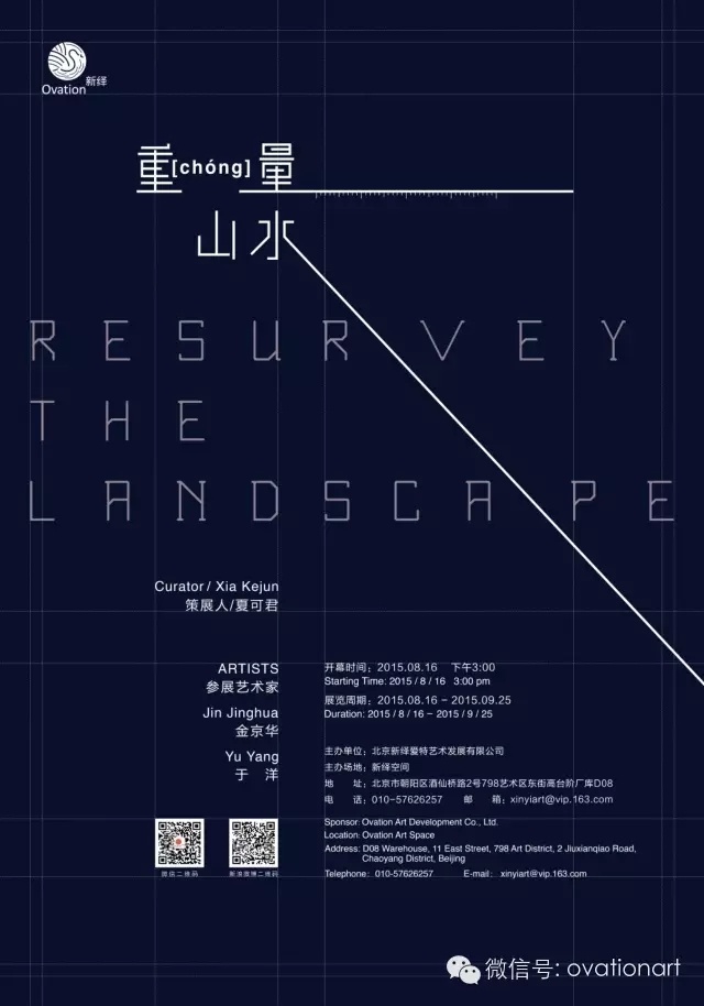 2015年8月16日下午3点,重量山水——金京华、于洋作品展将在新绎空间拉开帷幕。展览由北京新绎爱特艺术发展有限公司主办,夏可君担任策展人,展出金京华、于洋作品十余组。展览的作品由两位艺术家,通过对“山水”这个中国传统水墨画主要题材为主线,结合自身对传统和当代的思考和感受,运用不同材料的进行创作,在东西方文化碰撞交融的时代背景中,展开了对传统山水的重置与解读。