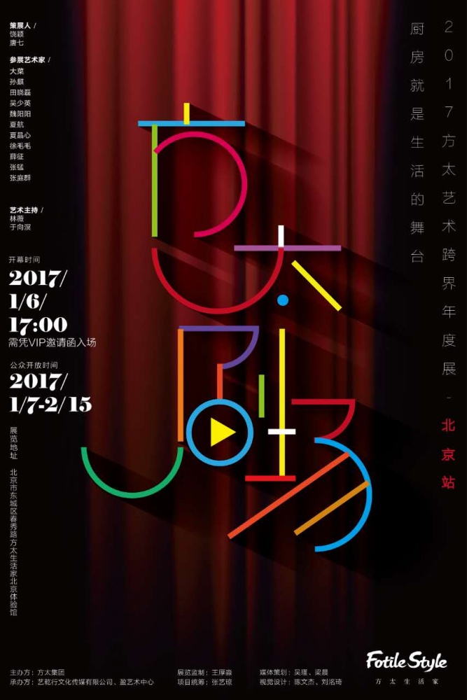 由方太集团主办,艺乾行文化传媒有限公司与盈艺术中心承办的“方太剧场 | 2017 方太生活家艺术跨界年度展—北京站”将于1月6日开幕。