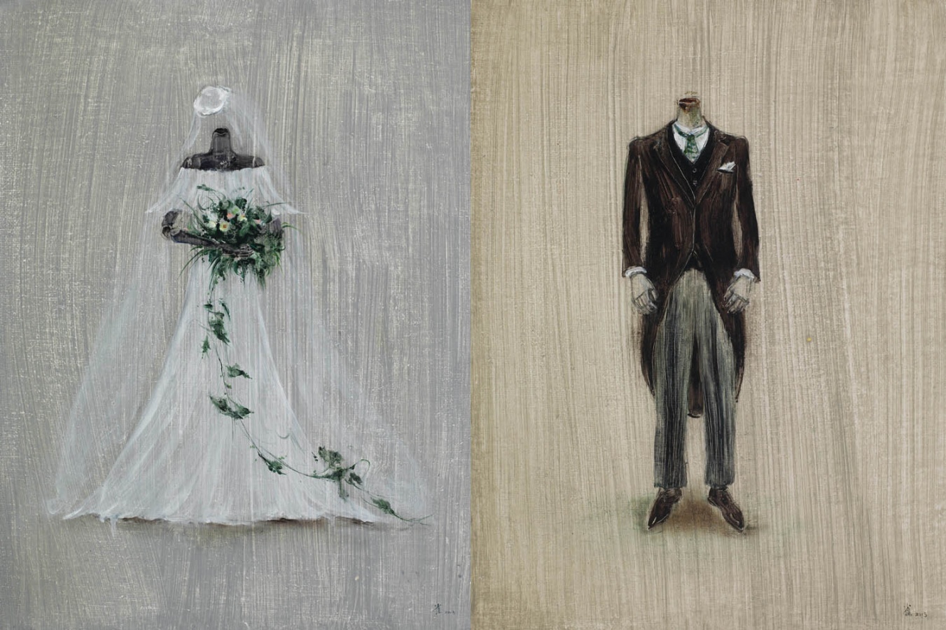 计文于1959年生于上海,朱卫兵1971年生于黑龙江。现都居住在上海。我们俩于2003年开始合作。几十年来我们深感国家政府的每一个举措和政策都会给我们生活在这块土地上的人们带来深刻的影响和变化。因此,在我们作品的创作过程中我们也不能摆脱对社会的关注和在意,对人们生活态度的反映,以及人们在变化的生活中心态上的转变等等、等等。另外我们也看到人们对物质财富的狂热追求使人们的心灵冷漠,甚至荒芜,我们选择“布”这材料是想通过其的温柔、温暖、温馨来抚平人们的心灵创伤;同时“布”这材料又是倔强的,不由你来编排,它裹上了棉,成了个不圆不方的形,它随着自己的性,它不可能给你精确的再现,但它能给你经常的意外,他需要你艺术的敏感去把握,它在缺陷中突显出它的特点。我们试图带着“问题”去发现着彼岸,使其迸发出无限的可能性。