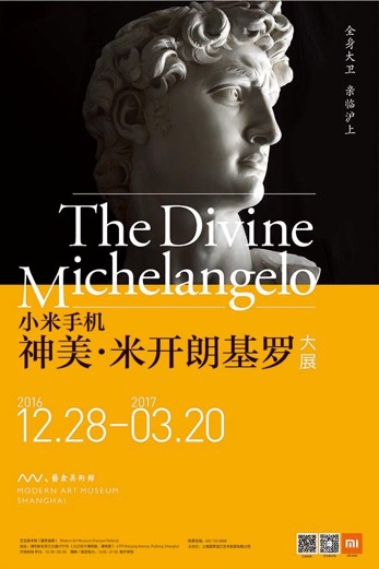 本次展览与米开朗基罗故居博物馆携手,中、意跨世界文化合作,由国内知名品牌小米手机赞助,完整呈现米开朗基罗七十余年的艺术生涯。重点展品包括艺术家15幅素描手稿真迹以及同时代艺术家的2幅真迹手稿,原模以原作1比1复制的《大卫像》、《圣殇》首度在国内现身,总价值超过3亿元人民币。并邀请到意大利湿壁画艺术家Antonio DeVito现场创作,以超过百件的展品涵盖米氏在绘画、建筑、雕塑及文学的成就。