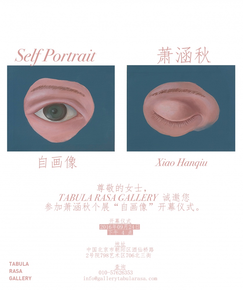 Tabula Rasa 画廊荣幸地宣布,我们将于2016年9月24日举办萧涵秋个展:自画像。这是艺术家在 Tabula Rasa 画廊的首次个展,展览将持续至2016年10月25日。