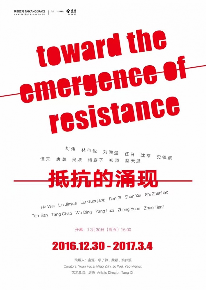 群展“抵抗的涌现”是由泰康空间邀请的四位年轻策展人富源、缪子衿、魏颖、姚梦溪共同担纲的策展项目。四位策展人目前均从事独立策展与艺术批评工作。在这次展览中,每个策展人分别负责各自独立的主题单元,她们通过协商讨论,将四个独立又彼此呼应的模块放在共同的框架下激活并展现。相较于过往线索清晰、内容整一的主题式展览,“抵抗的涌现”放松了对策展人及受邀艺术家的限制与捆绑,意在兼容更丰富也更跌宕的层次、更激烈也更幽微的表达、更专注也更灵活的策略,以及对策展行业怀抱热诚、好奇同时不忘严谨、自省的期许。同单独的个人策展项目相比,四位策展人共同承诺着彼此间的理解、沟通、配合与共同工作的努力和对共同信念的认取。她们不需要完全认同,但需要相互肯定;她们不介入对方的工作,但需要了解知情;她们在一次次的讨论中推进着自己的工作,也逐渐地勾画出整个展览的轮廓。“抵抗的涌现”希望通过青年人的共同实践,去对抗那种以集体为名对每一个个体的压制与消声,去抵消陈旧秩序对生命的消耗。