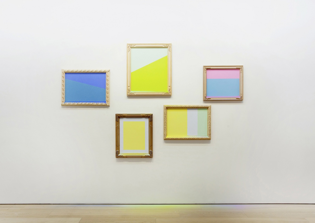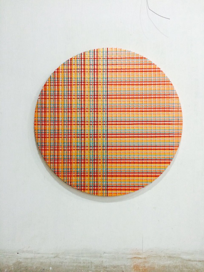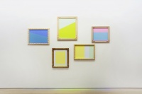 看来,这种被我们所预设的抵抗形式泛滥并联想起反面作用。就此脱离这些预设, “抽象”创作在普遍概念中意味着枯燥的工作过程,其过程背离对结果的想像而进行,它们理应属于理性制作和审美经验的结果。而几位创作者的教育背景所导致的形式创造实则大相径庭:其中三位创作者出生在80年代,并在国内的美学教育中长成。依靠记忆符号、工具以及在找寻理论支持中促进审美经验,他们几乎都使用了勾起深刻而具有哲学以为的视觉感受来构建印象;具有南法学习背景的董大为,一直利用着几种国外生产的几种品牌的色系材料来创作,在观众看来,他只是显得习惯使用明快单纯的色泽来获得效果。