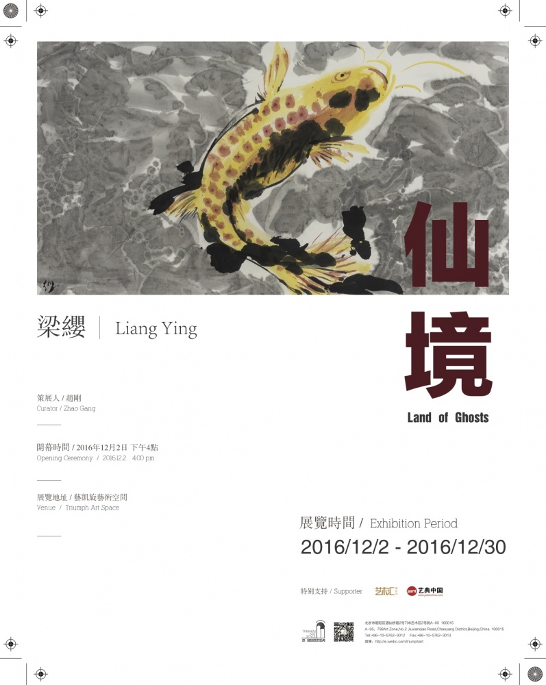 她最新的作品推进到了一个更深的层次,并且看起来更加晦暗。你可以清晰的感受到作品在微妙的发酵推进,苦乐参半的中国社会召唤起了来自于她作者性中更深入的批判。她进一步的批判中国当下无效的水墨实践,已达近乎于浪费纸张的程度。例如,作品中鬼怪们进行着对话,亦梦亦真,但并不像是当代艺术中心常见人物被扭曲后的鬼怪喻像,她的鬼怪形象全然来自于中国民间神话故事当中。我并没有询问过她画这些鬼怪的原由,但是却能让我真切地感受到一种人性的疏离。在其他作品中,还有像是被上下颠倒的金鱼以一种超现实的姿态置身于情景之中。在此,她用绘画中人物不合时宜的姿态挑战着中国传统绘画,你会在阅读她的作品时被她误导,又或是一种矫正。她的用色系统也在发生着作用,根本原因是她早期在西方的学习,避免了一味地顺延中国的传统水墨绘画体系。