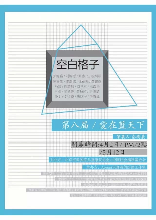 位于北京798艺术区AoAart天真者的绘画工作室,长年致力于这些孩子的世界和社会之间的纽带工作。这里是初识孩子们的起点。本次展览命名为“空白格子”,由艺术家、新锐策展人秦树义担任策展人。