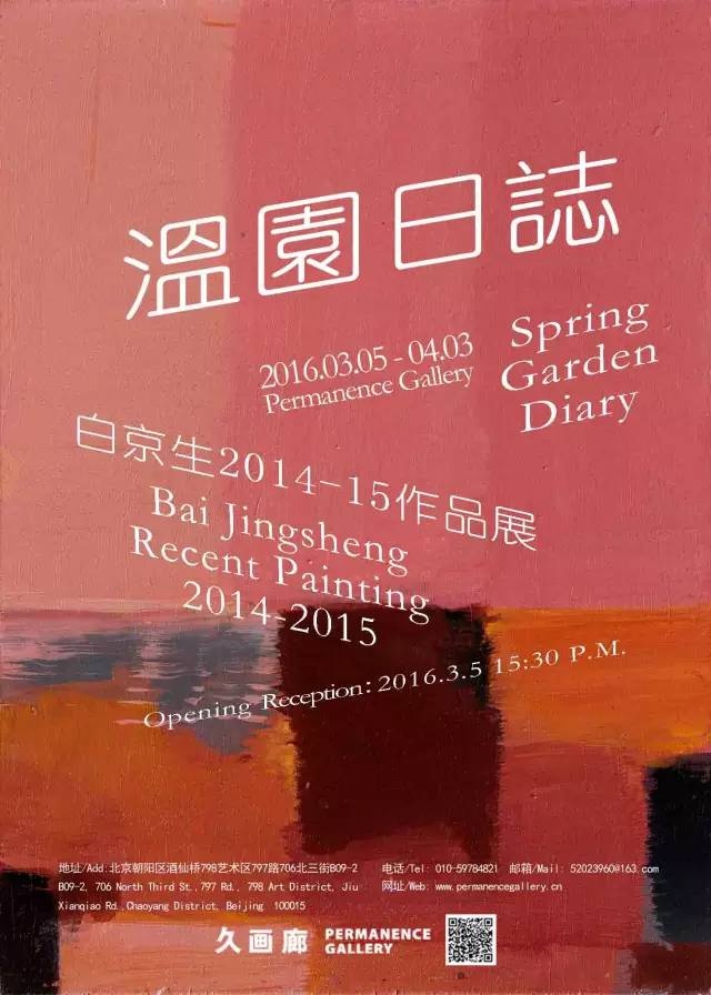 “溫園日誌——白京生2014-15作品展”将于2016年3月1日在北京798艺术区久画廊开展,展览共展出艺术家2014-2015年来创作的40余件作品。