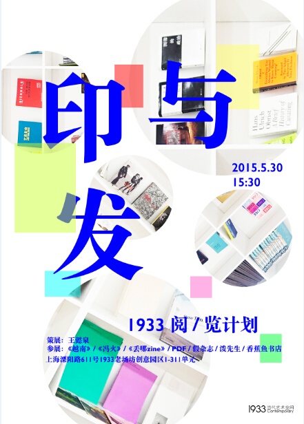 “1933阅/览计划”特邀艺术家和作者王懿泉策划名为“印与发”的特别活动现场,将展出7组由艺术家或出版人独立制作和创立的艺术家书、文集、书店、个人出版机构等,包括《越南》(林奥劼和朱建林),《冯火》月刊(冯伟敬,朱建林,史毅杰),《丢哪zine》(奶粉),PDF(胡昀、李牧、陆平原),假杂志(言由),泼先生(芬雷),香蕉鱼书店(苏菲和关暐)。